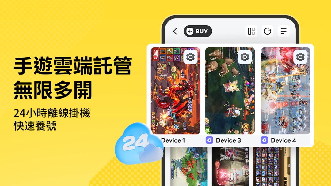 ● 雲手機托管服務,讓遊戲 24 小時自動運行