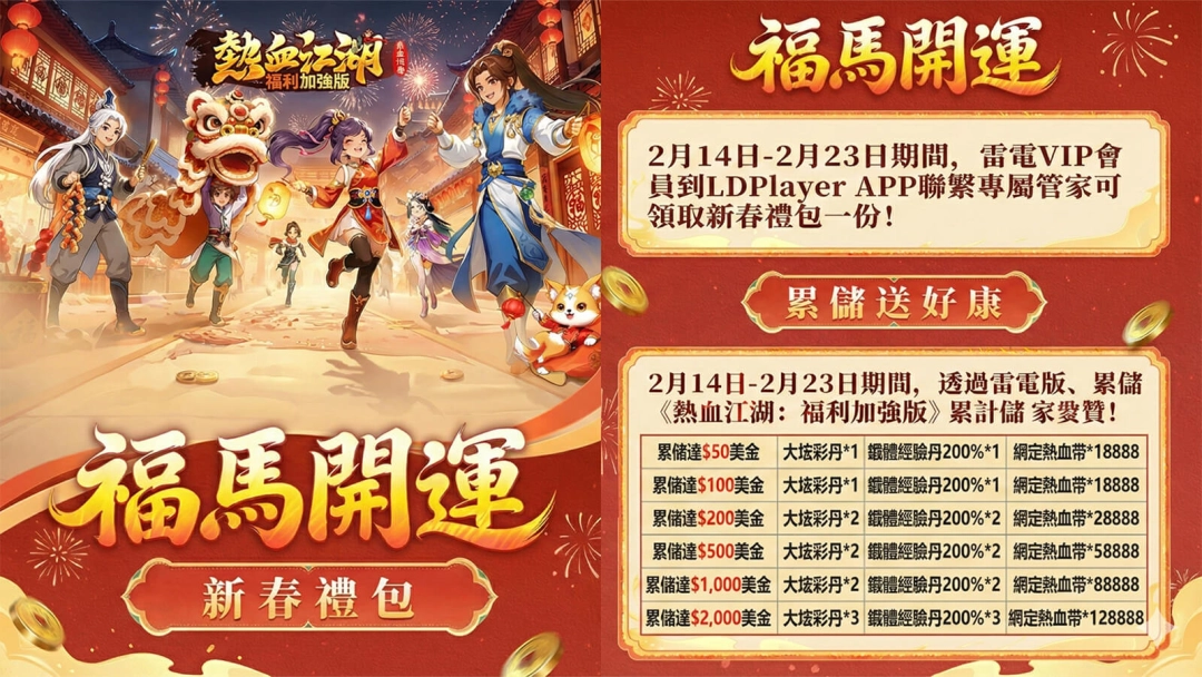 《熱血江湖:福利加強版》為經典同名漫畫改編,以武俠、熱血、羈絆為核心,讓你穿越回那個刀光劍影、兄弟肝膽相照的江湖歲月。