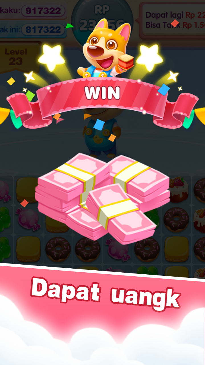 消除糖果可以立即獲得現金,獲得的現金可以立即提取。