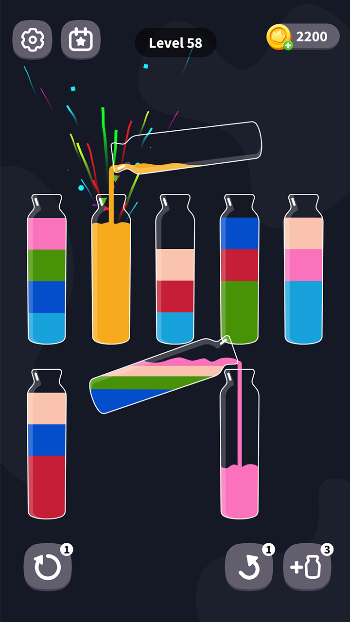 1.創新玩法:將不同顏色的水裝入對應的瓶子中,挑戰你的邏輯和顏色辨識能力。